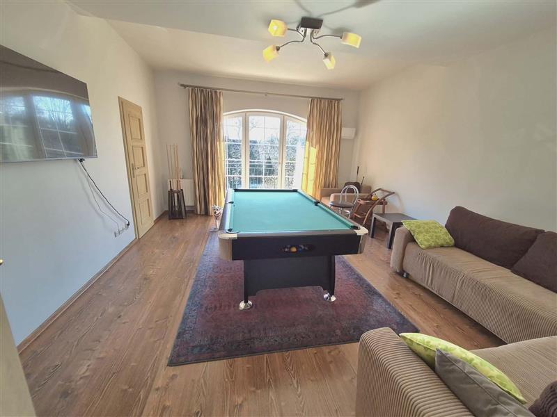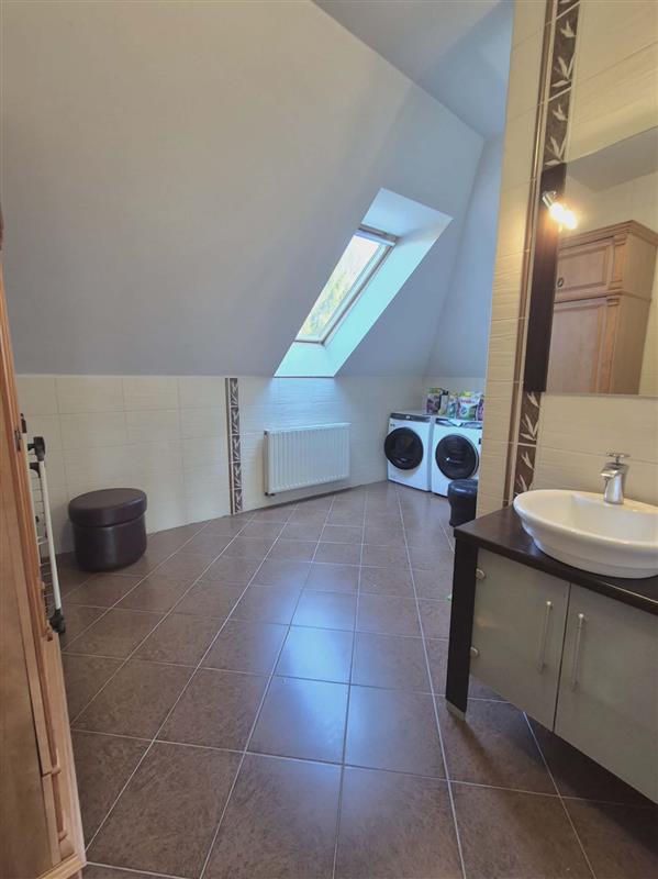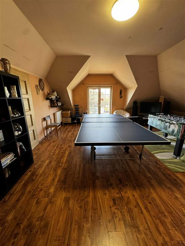 Na 2 kondygnacji - korytarz, pokój bilardowy z wyjściem na balkon widok na ogród, pokój ze stołem do tenisa stołowego i ,,piłkarzyki, ten pokój ma własną łazienkę. 3 pokoje posiadają własną garderobę, na tej kondygnacji mieszczą się dodatkowo 2 sypialnie i duża łazienka.