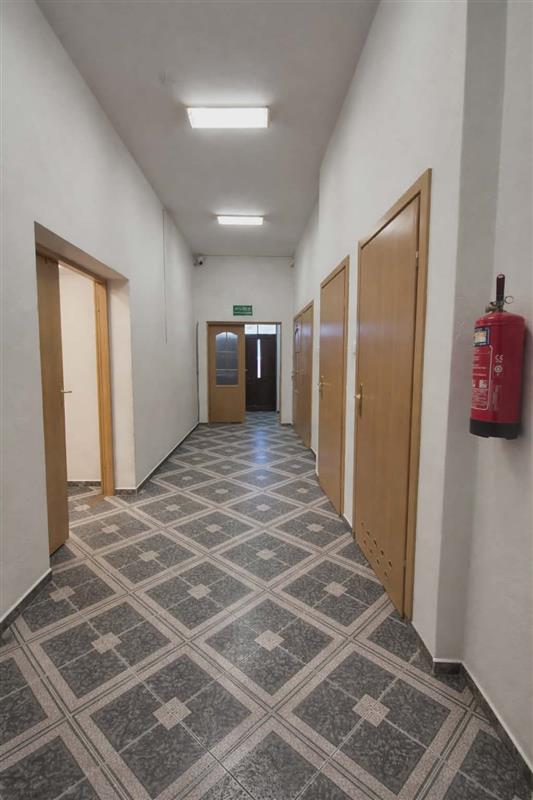 Przyziemie składa się z długiego korytarza, osobnego biura, pom. gospodarczego z kotłownią, szatni z aneksem kuchennym dla pracowników, osobne toalety - damska i męska oraz po prawej części duża sala  - otwarta przestrzeń z oknami stanowiąca obecnie część użytkową na usługi. wys.3,20m.