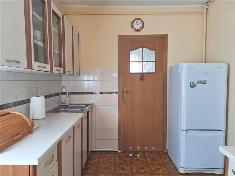 Lokal o bardzo korzystnym układzie pomieszczeń. Składa się z dwóch pokoi, przestronnej łazienki z prysznicem oraz oddzielnej, przechodniej kuchni z oknem. Mieszkanie o trójstronnej ekspozycji na słońce, dzięki czemu pozostaje doskonale doświetlone przez cały dzień. Kuchnia wyposażona jest w piekarnik elektryczny oraz płytę gazową. Łazienka również posiada okno, co znacząco podnosi komfort użytkowania.
