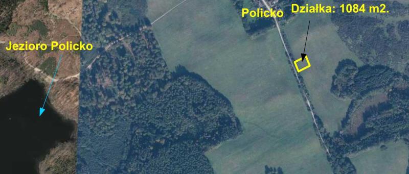 Działka przeznaczona pod budownictwo jednorodzinne o pow. 1084 m2 położona w spokojnej i urokliwej miejscowości, Policko.  Nieruchomość posadowiona w odległosci kilkuset metrów od lasu i ok. 800 metrów od jeziora kąpielowego Policko na lekkim wzniesieniu. Kształt działki to prostokąt. Na działkę wydane są Warunki Zabudowy.